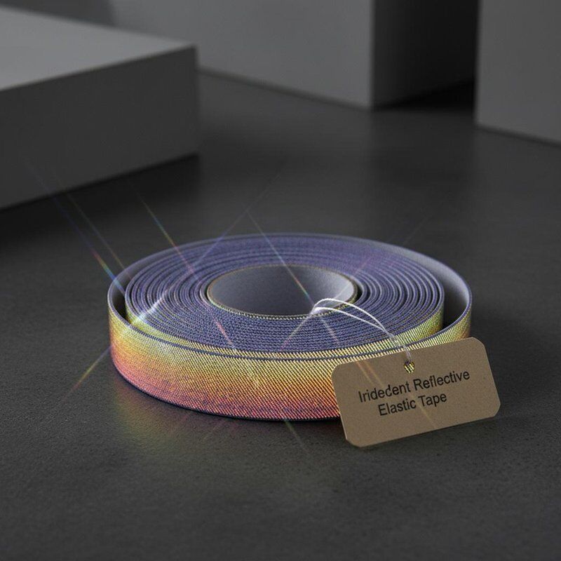 ESA Ref is an innovative elastic mesh tape featuring laser-cut iridescent reflective film lettering, combining stretch performance with high-visibility design. It is engineered for brands that demand both functionality and standout aesthetics.